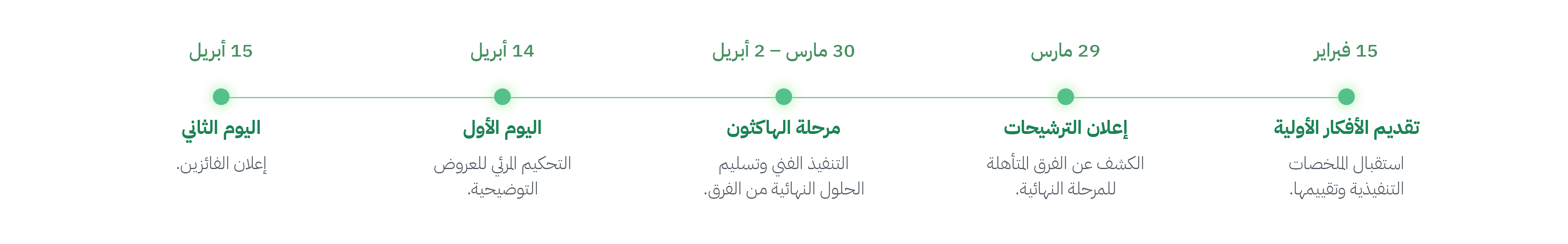 - المرحلة الثالثة (التحكيم والختام): تشمل التحكيم المرئي (Demo Day) وتتويج الفائزين في حفل ختامي مرئي.