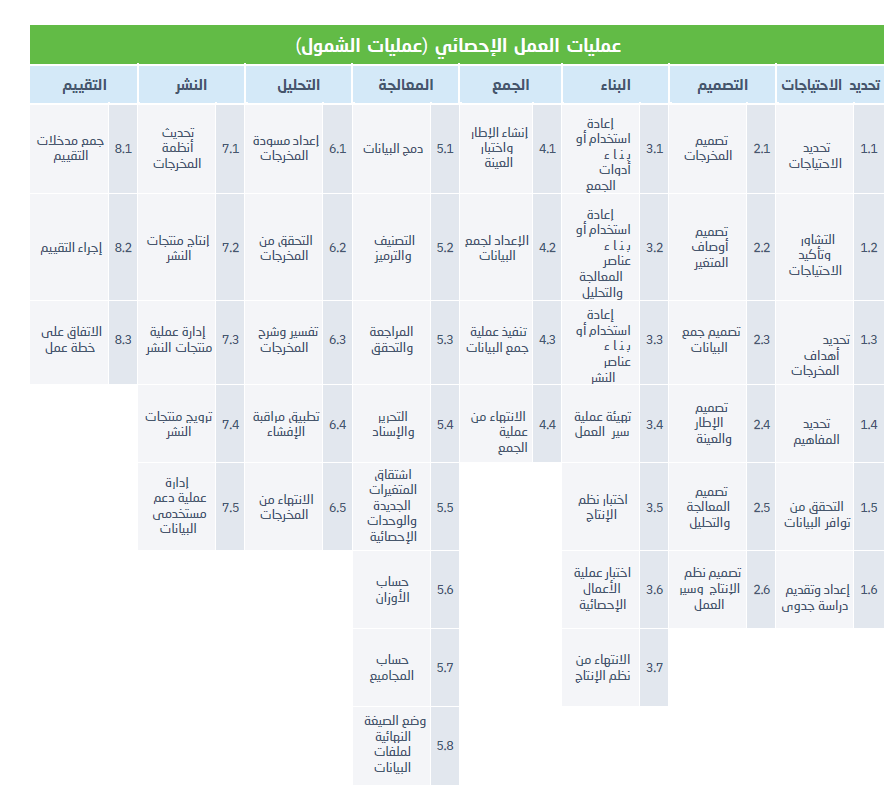 • المستوى :1 مراحل عمليات العمل الإحصائي الثمانية.