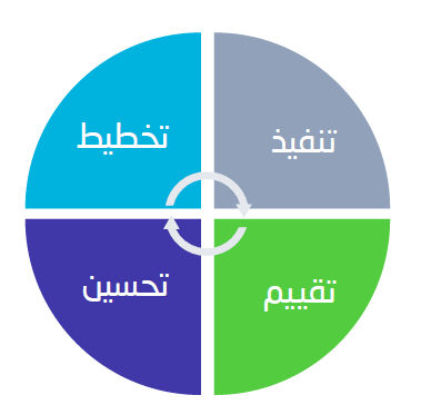 • وتعزز »حلقة الجودة« من نهج التحسينات المستمرة والتعلم المؤسسي، بمرور عمليات الجودة بعناصر هذه الحلقة كما في الشكل التالي: