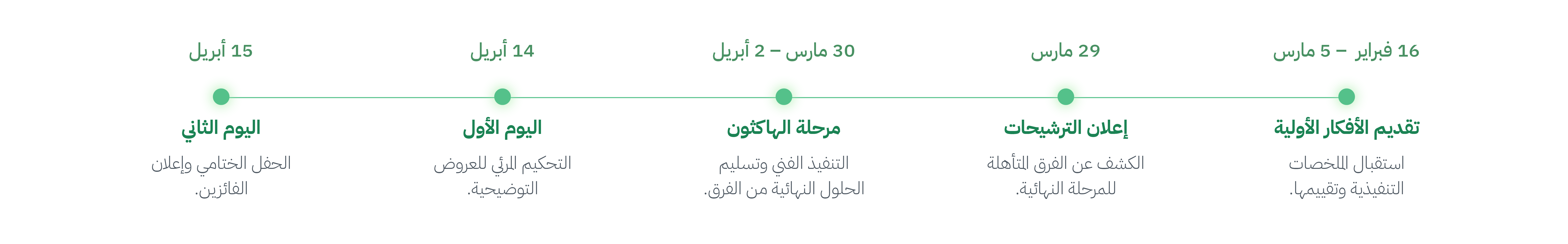- المرحلة الثالثة (التحكيم والختام): تشمل التحكيم المرئي (Demo Day) وتتويج الفائزين في حفل ختامي مرئي.