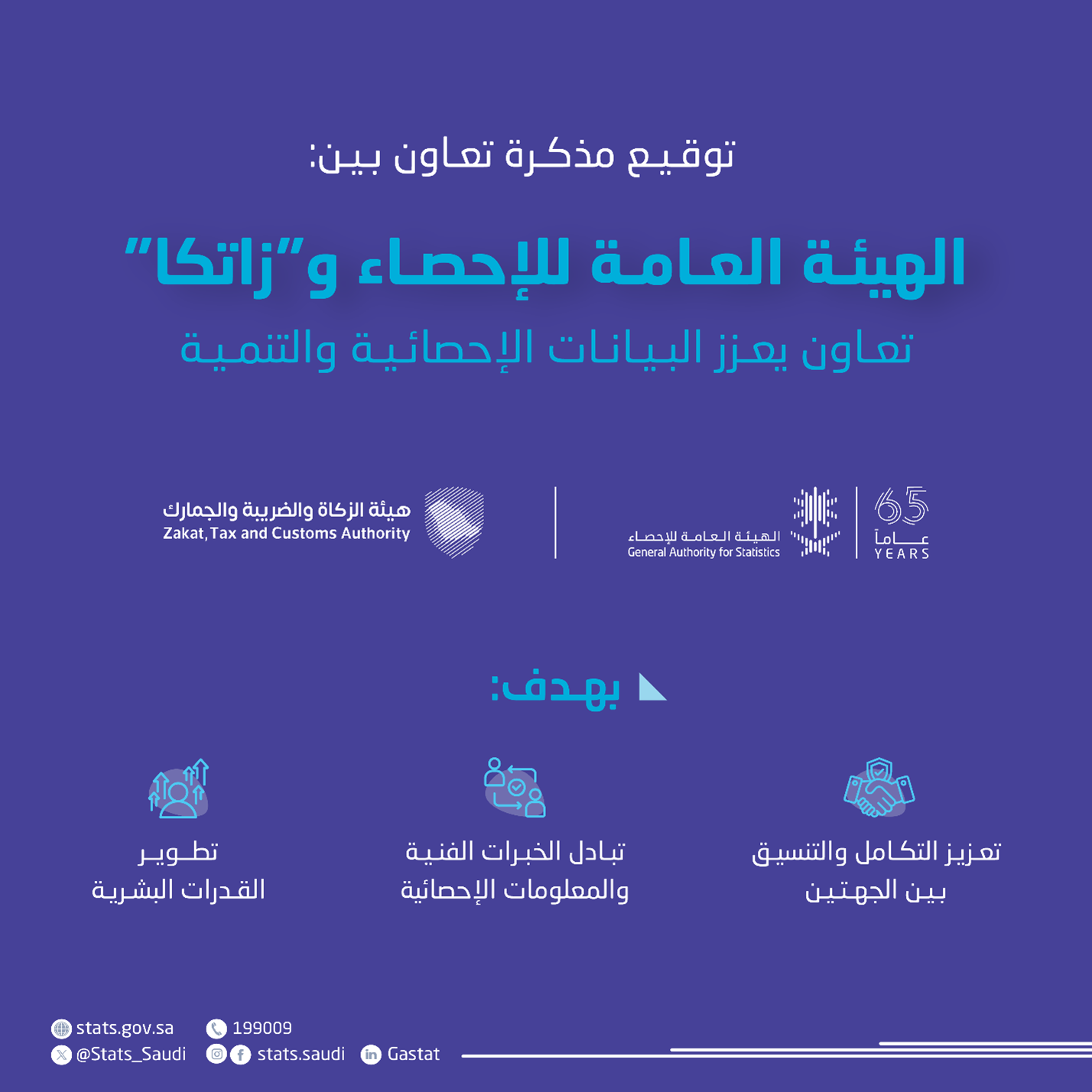 الهيئة العامة للإحصاء و "زاتكا" توقّعان مذكرة تعاون لتعزيز التكامل بين القطاعين وتبادل الخبرات